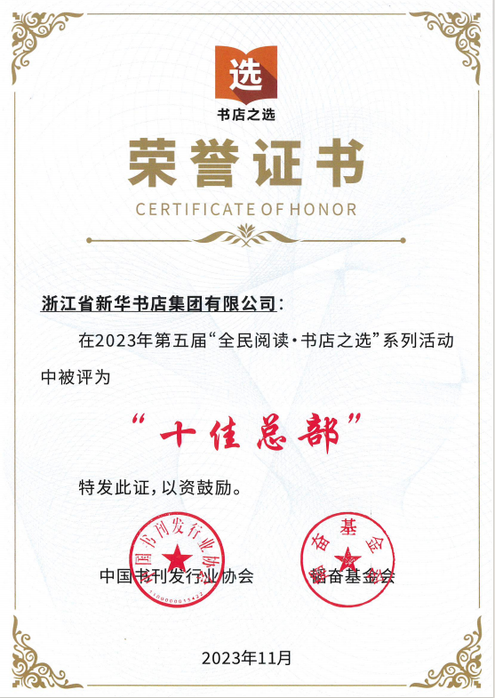 2023年第五屆“全民閱讀·書店之選”系列活動中被評為“十佳總部”