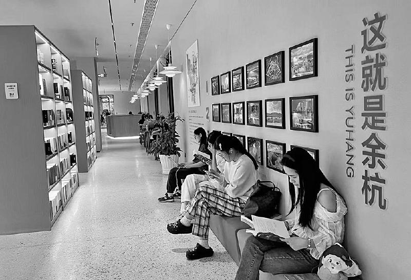 余杭文字里書(shū)店坐滿(mǎn)了看書(shū)的讀者。